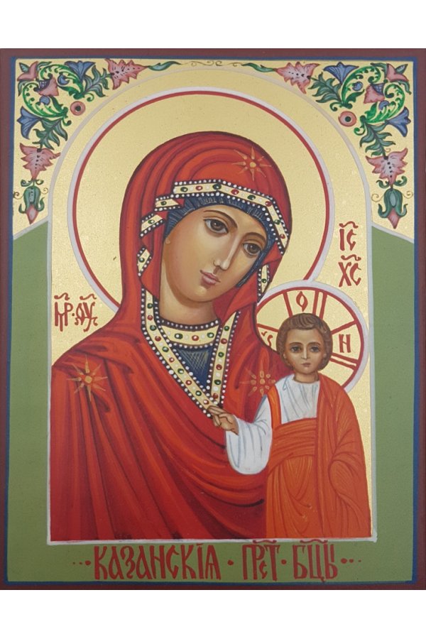 Икона Казанская Божья Матерь 10 на 13 см рукописная, арт ИРГ-513